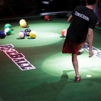 With PoolBall® you become the cue yourself! On this oversized billiard table, two teams face each other and play a modified form of pool.